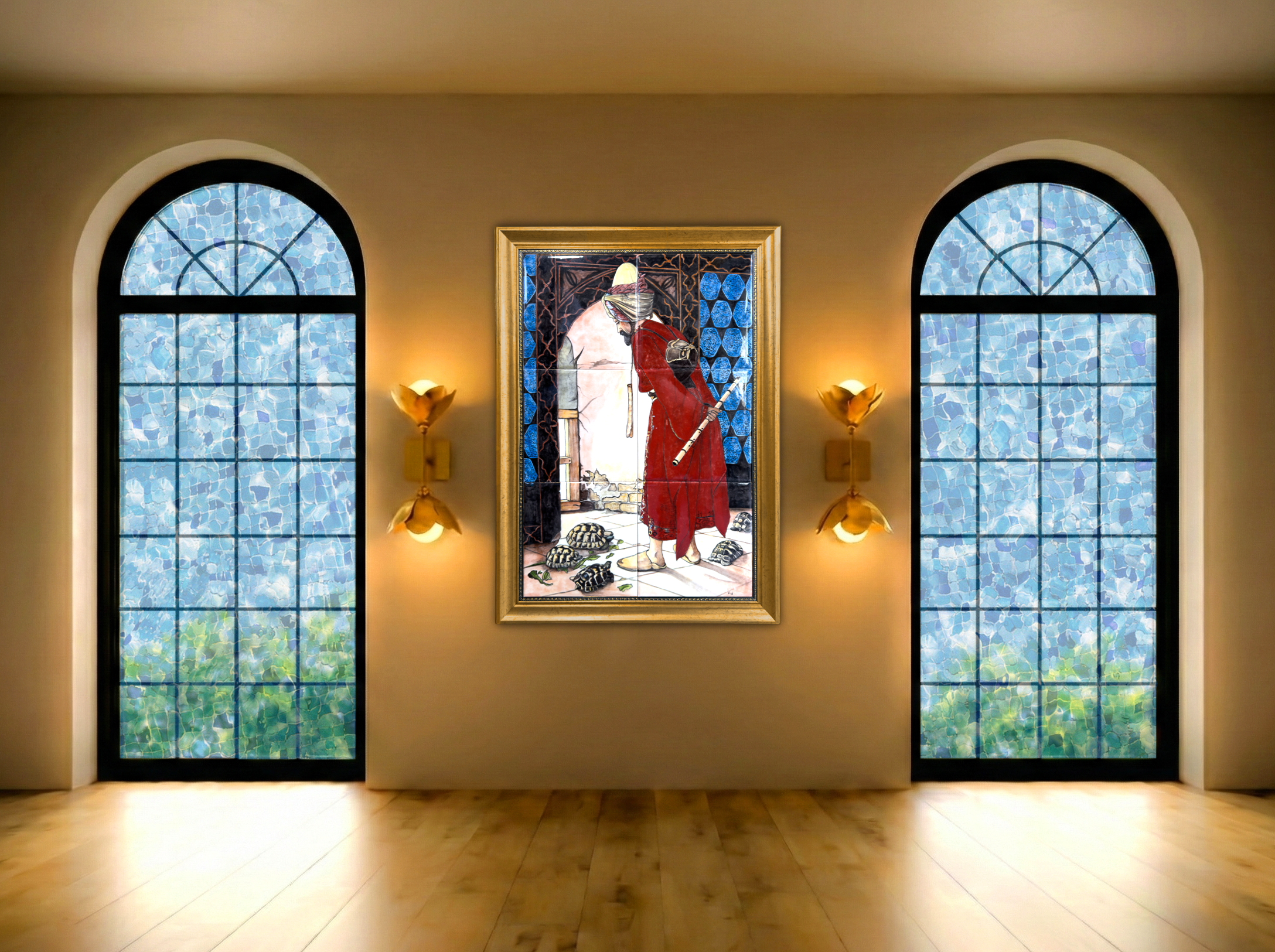 A regal collection of framed Iznik tiles, reimagining the architectural splendor of...