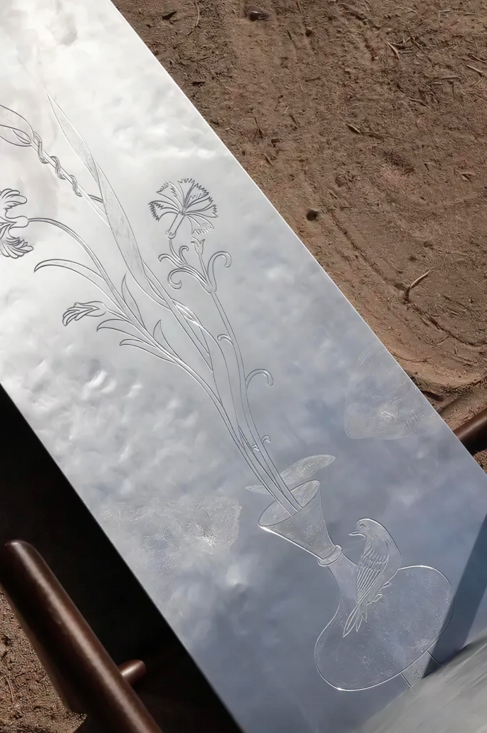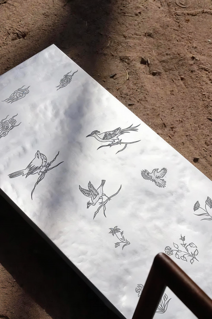 The textures, forms, and all details of each piece are entirely handcrafted with rhythmic lines that transform into organic shapes.