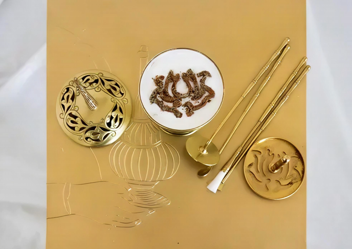 This incense burner offers both a visual and spiritual experience with the elegant ornamentation of the Ottoman tradition and the simple, balanced form of Japanese aesthetics. Inspired by the traditional kōro form, Ottoman rumî motifs are applied on its surface with the ajour technique.