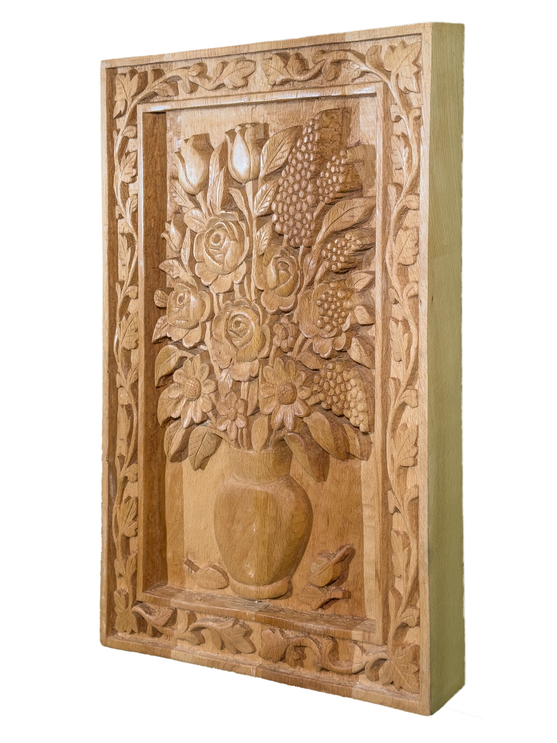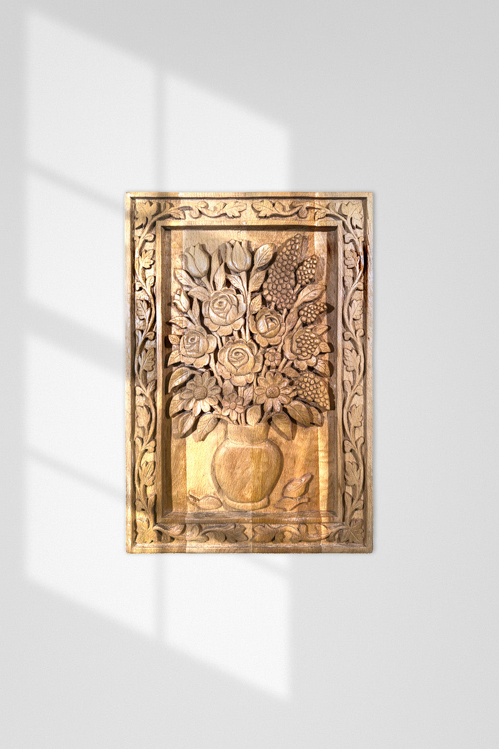 It has neither a fading leaf nor a falling petal. Each flower gathered in the vase symbolizes a memory of the past, the peace of the present, and the hope for the future. Every leaf and every petal is patiently hand-carved, every detail crafted with love.